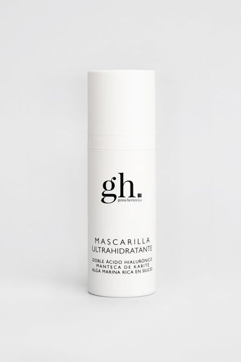 Mascarilla facial hidratante formulada con doble ácido hialurónico, alga marina rica en silicio, manteca de karité, aceite de almendras dulces y aceite de sésamo. Contiene extractos vegetales de granada y manzanilla.