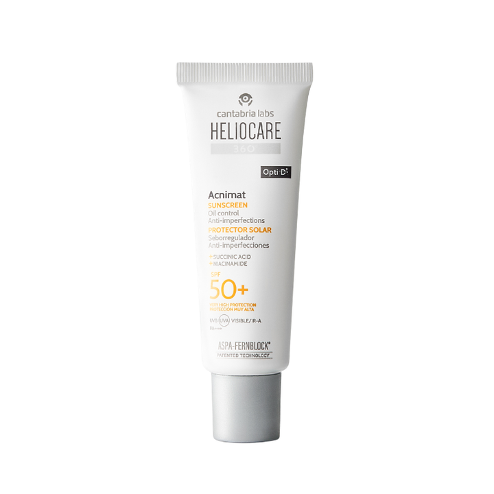 Fotoprotección especializada de amplio espectro (UVB, UVA, visible, infrarroja), SPF 50+, de uso diario para pieles grasas con tendencia acneica. Acción anti-imperfecciones y seborreguladora gracias a un sistema específico compuesto por ácido succínico y niacinamida. Gracias a su sistema matificante, mantiene la piel matificada durante más de 12 horas, reduciendo la secreción sebácea en un 42%, tras 28 días de aplicación.